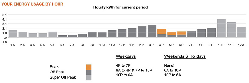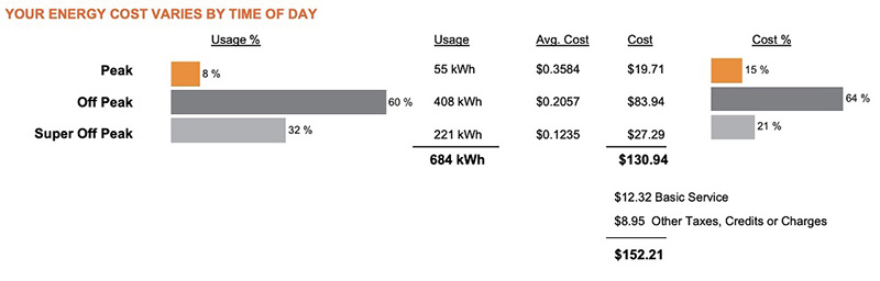 From your first new bill, you’ll see the Peak, Off Peak and Super Off Peak detail for the most recent billing period. As you continue to take advantage of the new pricing plan, you’ll be able to see your month to month trends.